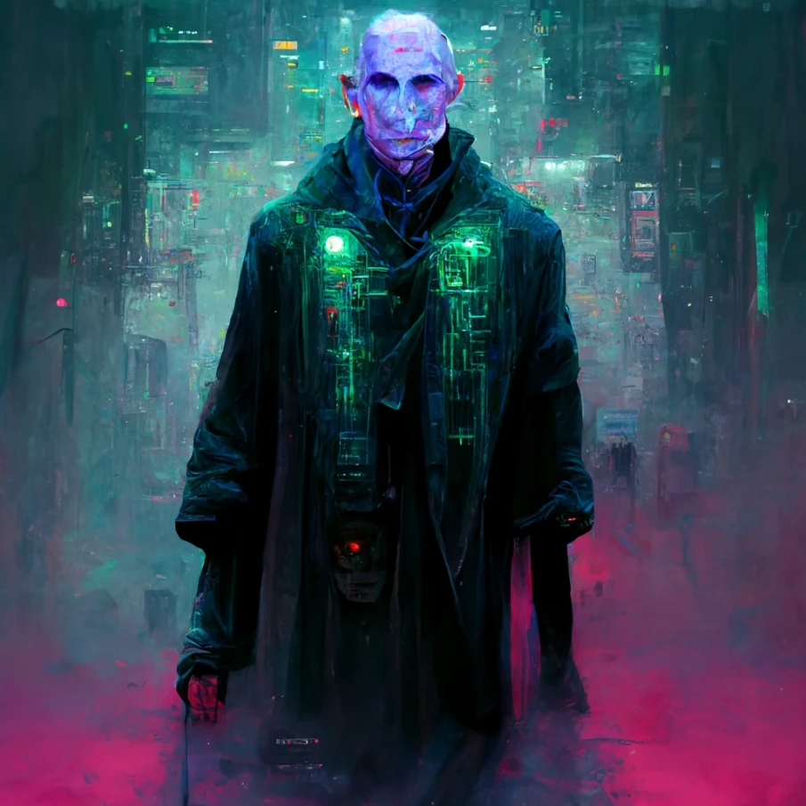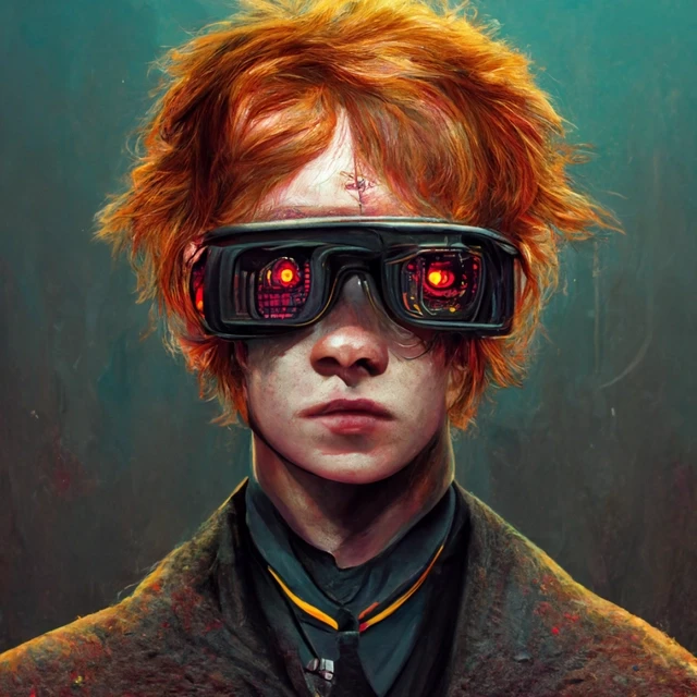 На представлених картинках частина головних героїв франшизи: Гаррі Поттер, Рон Візлі, Герміона Грейнджер, Альбус Дамблдор, Северус Снейп, Полумна Лавгуд, Хагрід, Волан-де-Морт, а також сова Букля та кілька пейзажів з видом на кіберпанковий Гоґвортс. Подивіться, вийшло незвичайно та цікаво.