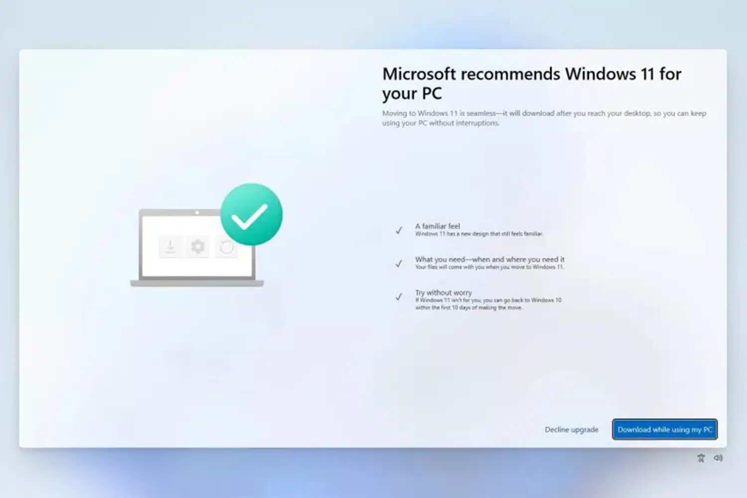 Банер з’являється відразу після запуску Windows. Він перекриває весь робочий стіл і його можна закрити лише виконавши чотири дії. У випадку, якщо користувач приймає пропозицію про оновлення, Windows 11 очікувано не встановлюється, але банер при цьому не закривається.