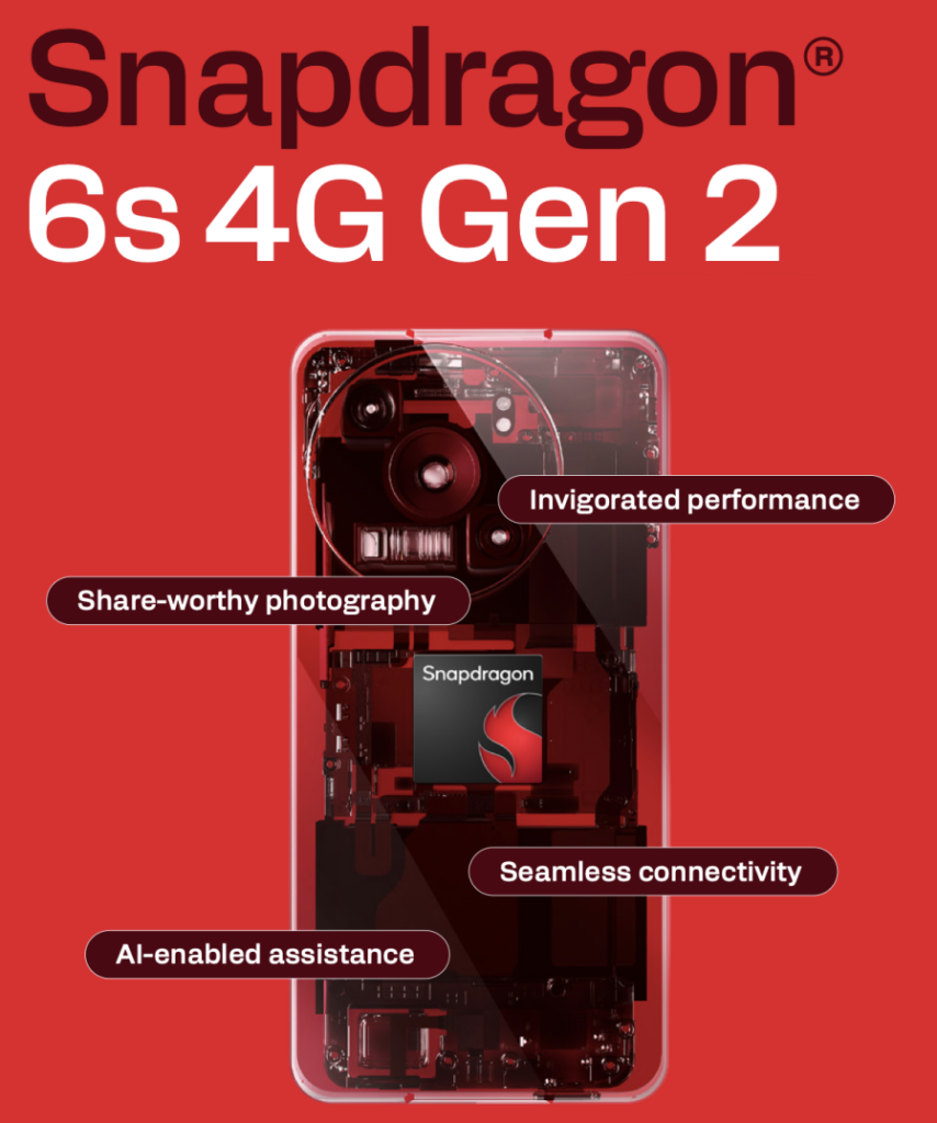 Snapdragon 6s 4G Gen 2 став помітним кроком вперед у порівнянні з попереднім поколінням. Процесор отримав Kryo-ядра з частотою до 2,9 ГГц — приріст продуктивності CPU досягає 51%, а графіка Adreno стала приблизно на 20% швидшою. Чіп виробляється за 6-нм техпроцесом, підтримує дисплеї з роздільною здатністю Full HD+ і частотою до 120 Гц, до 8 ГБ оперативної пам’яті LPDDR4X і накопичувачі UFS 2.2.
