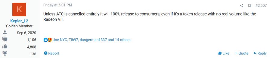 Як стверджує інформатор, якщо розробку графічного чипа під кодовою назвою AT0 не скасують в останній момент, геймери отримають потужну новинку. Згідно з попередніми чутками, цей графічний процесор матиме 96 обчислювальних блоків та широку 512-бітну шину пам’яті.