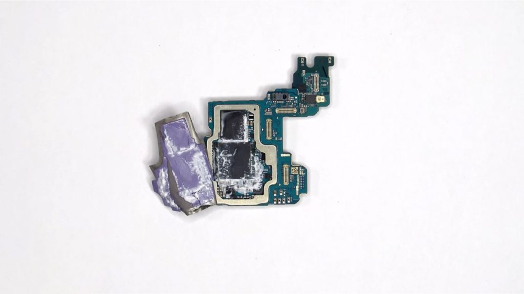 Як з’ясувалося, зняти задню кришку пристрою доволі легко. Під нею ховаються графітові плівки для відведення тепла. Цікавим нововведенням стала наявність термопасти між задньою частиною материнської плати та рамкою смартфона — такого рішення в попередніх поколіннях лінійки Galaxy S Ultra не зустрічалося. Крім того, виробник додав спеціальний термоінтерфейс на модулі пам’яті (накопичувач і DRAM).