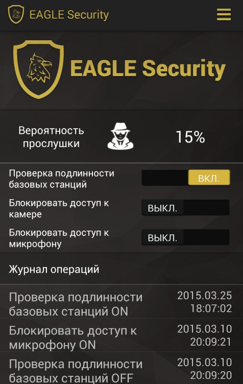 EAGLE Security FREE. Також є в Google Play і перевіряє достовірність мобільних станцій, до яких підключається користувач. Подібна перевірка дозволяє захиститися від передачі розмов та SMS-повідомлень третім особам.