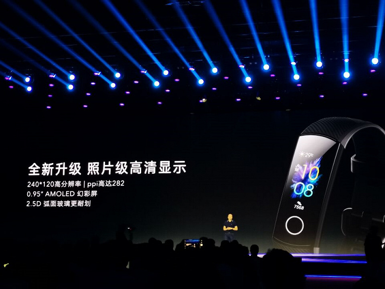 Найменша серед сьогоднішніх новинок Honor – це фітнес-браслет Honor Band 5. Він виконаний у дусі моделі попереднього покоління, але має нові можливості, найцікавіша з яких – пульсоксиметр.