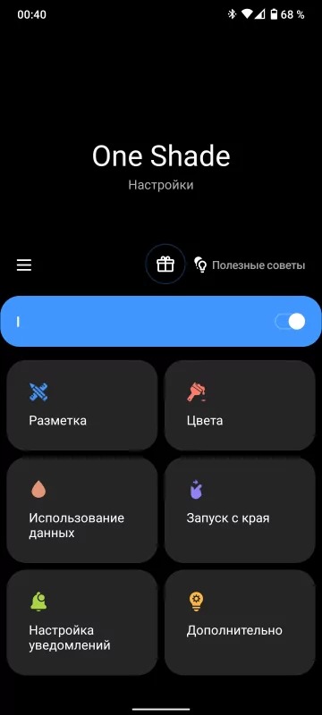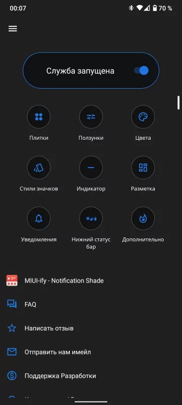 У додатку можна налаштувати майже кожен елемент інтерфейсу: розмітку, кольори, повідомлення, вивести додаткову інформацію, включити запуск з краю екрану і так далі. Частина функцій платна, але і без цього надається величезна кількість можливостей. На жаль, при натисканні повідомлення відтворюється оригінальна анімація, мабуть, тому що її складно відтворити в окремому додатку (дана проблема є спільною для всіх встановлюваних шторок).