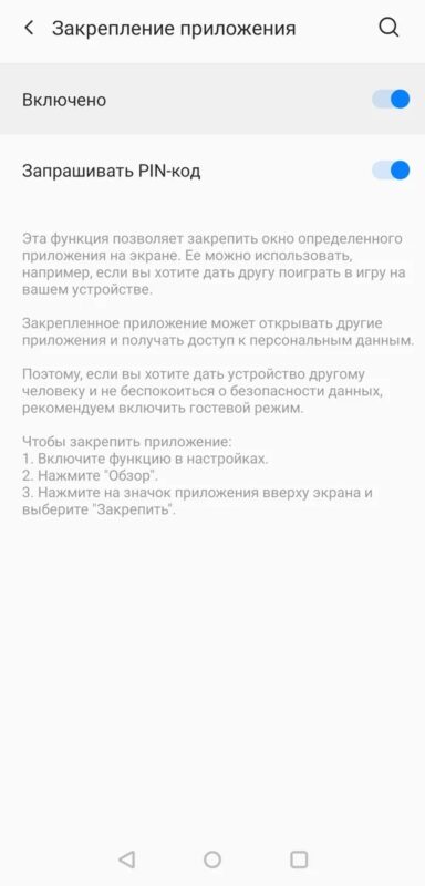 1. Включити режим “Закріплення екрана” в налаштуваннях телефону (розділ “Безпека і блокування”).