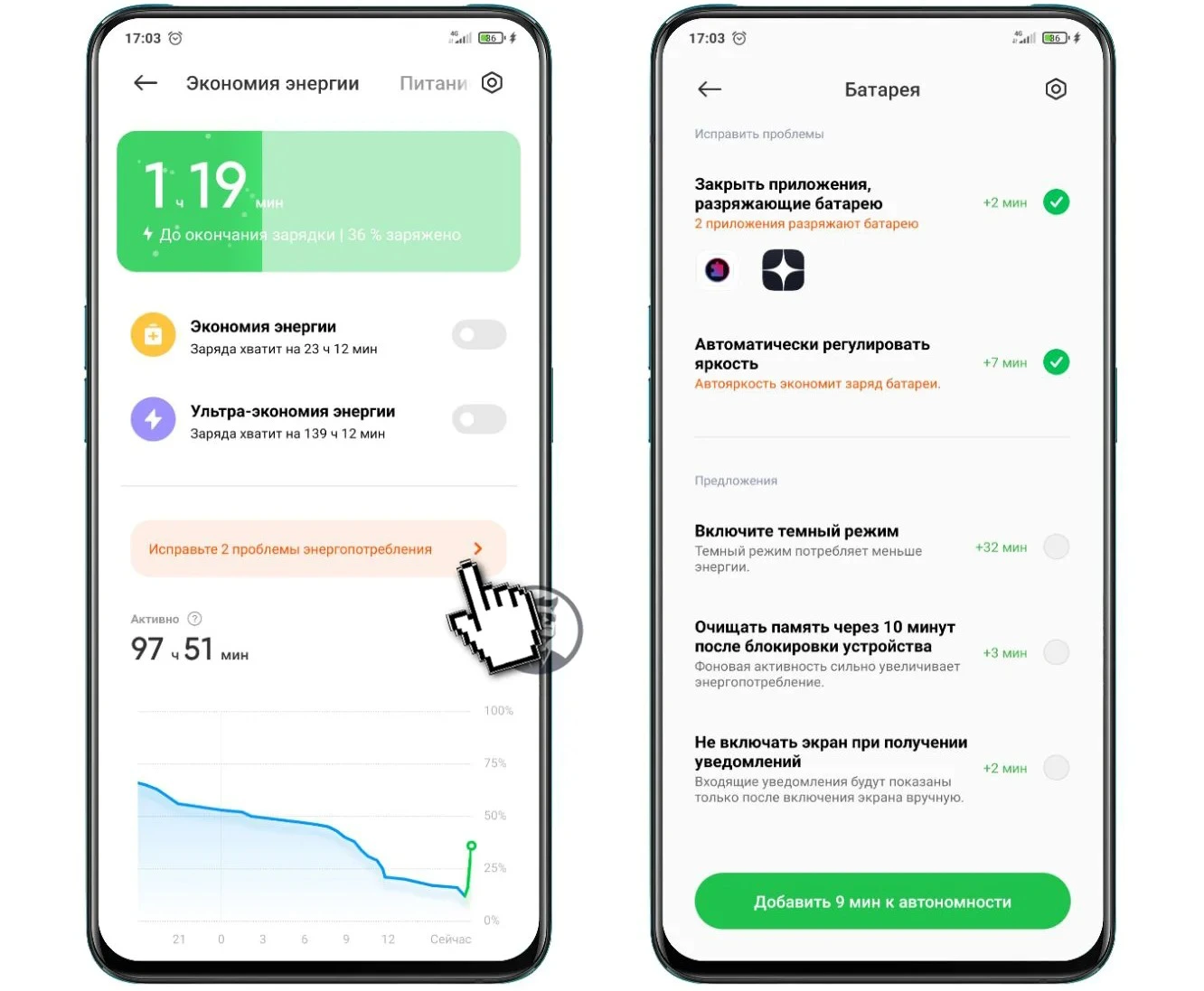По-перше, зверніть увагу на оповіщення про проблеми енергоспоживання, яке насправді не допомагає, а скоріше відволікає марними порадами, але можливо комусь це буде корисно.