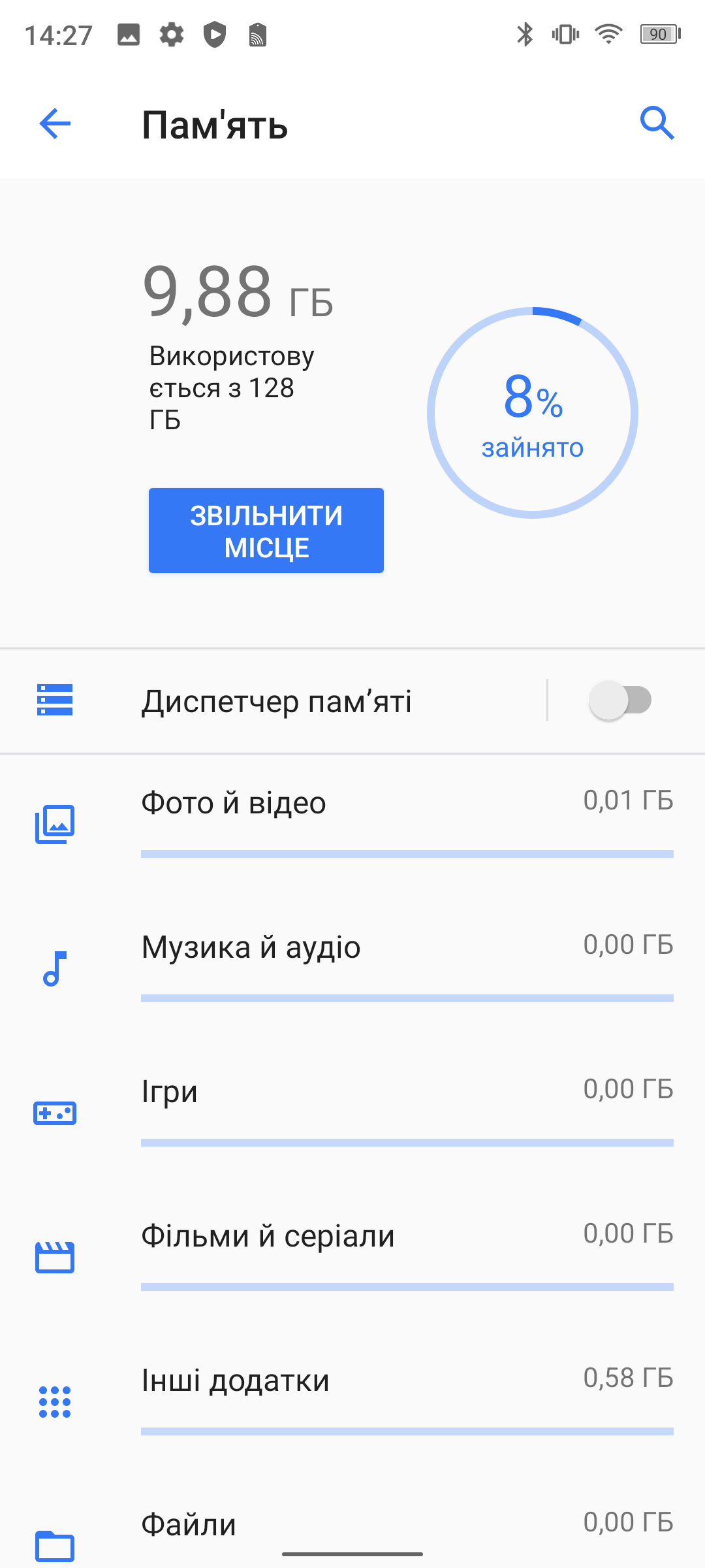 - Androbench (random): 118 (рандомне зчитування); 25 (рандомний запис)