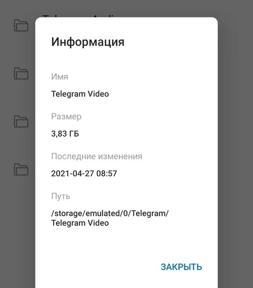 Перевірити, чи залишилися якісь файли з Telegram на смартфоні, можна за допомогою будь-якого файлового менеджера. У пам’яті телефону потрібно знайти папку з назвою «Telegram». У ній знаходяться чотири папки, і, якщо очищення кешу пройшло успішно, вони будуть порожні. Якщо ні, можна вручну видалити всі дані, які в них зберігаються.