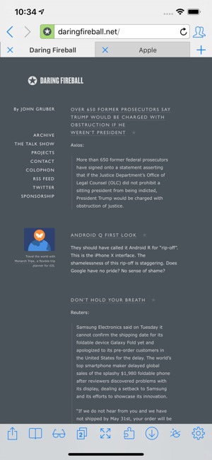 На думку багатьох користувачів iCab Mobile – кращий браузер для iPhone, тому що включає в себе все те, чого не вистачає стандартному Safari. Особливо радує наявність справжніх вкладок, які залишаються звичними завдяки десктопним браузерам. Айфони в силу маленьких дисплеїв не дозволяють оцінити цю перевагу, зате для Айпадів саме такий формат більш зручний.