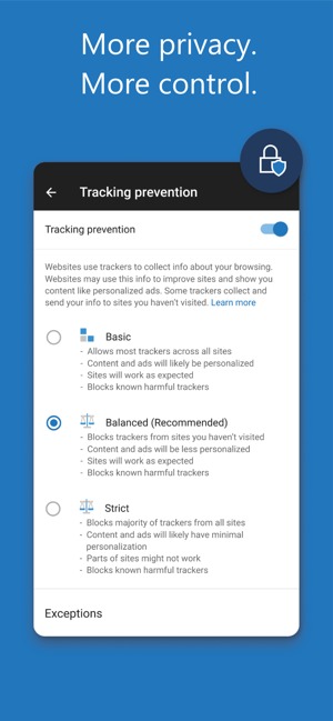 - Найбільш просунуті функції для блокування відстеження.