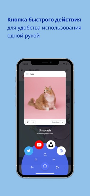 У Opera є спеціальна кнопка швидкої дії, яка дозволяє управляти інтерфейсом, тримаючи смартфон в одній руці. Це особливо зручно на великих екранах, адже тепер не обов’язково тягнутися до іншого кінця дисплея. За допомогою цієї кнопки можна створити нову вкладку, ввести пошуковий запит або швидко поділитися будь-якою інформацією.