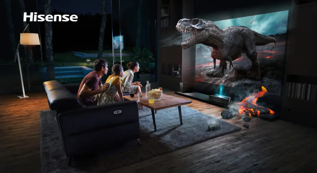 Флагманом серед лінійки Hisense є лазерний телевізор з діагоналлю від 80 до 120 дюймів, який, по суті, є короткофокусним проектором з Ultra HD 4K і акустикою JBL by Harman. На українському ринку представлений Hisense Laser TV з діагоналлю 100 дюймів.