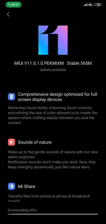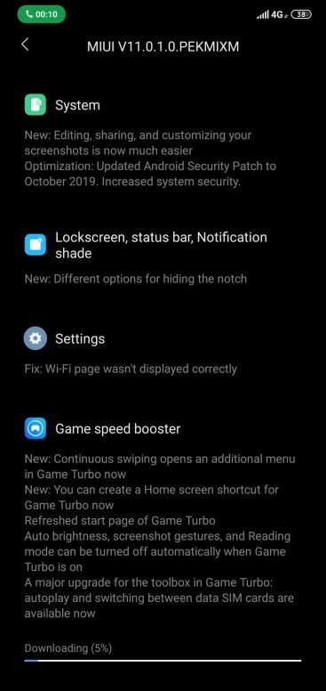 Прошивка MIUI 11.0.1.0.PEKMIXM має обсяг 565 МБ і поширюється поступово.